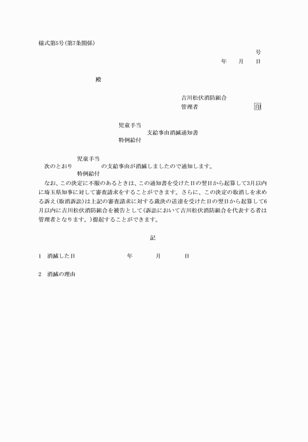 (2) 様式第5号による通知書(以下「支給事由消滅通知書」という。)作成し、受給者に送付すること。