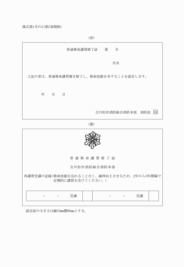 4 消防長は、応急手当指導員や応急手当普及員(申請があった場合)が指導する救命入門コースを参加した者に対し、様式第4号に定める参加証を交付することができるものとする。