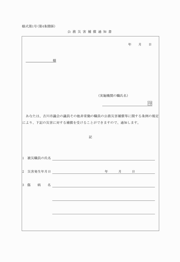 ○吉川市議会の議員その他非常勤の職員の公務災害補償等に関する条例施行規則