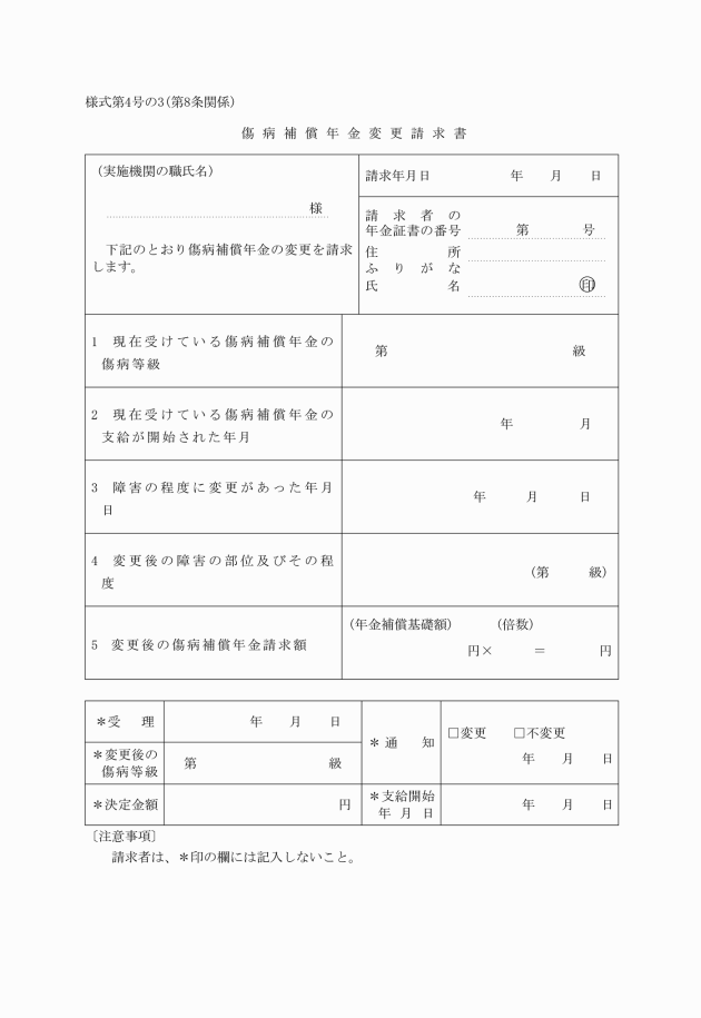 (3) 障害補償年金を受ける者にあっては、その障害の程度に変更があった場合
