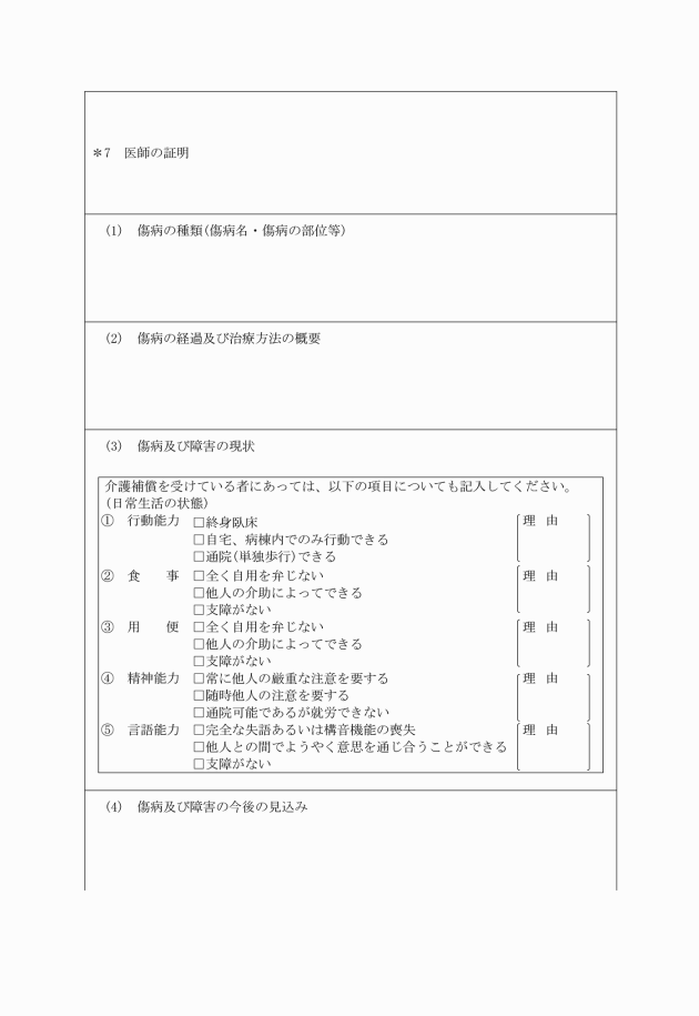 2 1の月に親族又はこれに準ずる者による介護を受けた日があるとき(その月に介護に要する費用を支出して介護を受けた日がある場合にあっては、当該介護に要する費用として支出された額が70,790円以下であるときに限る。) | 月額70,790円(新たに介護補償を支給すべき事由が生じた月にあっては、介護に要する費用として支出された額) | |