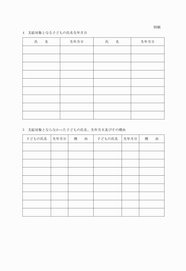 ウ 請求者が中学校修了前の子どもであった者である場合は、受給者台帳の支払金額欄に支払金額及び支払年月日を、備考欄に請求者の氏名及び住所を記入する。