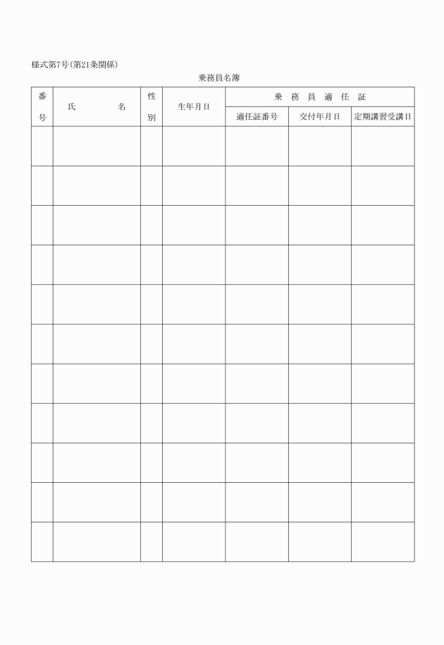 第7条 乗務員は、患者等搬送業務に従事するときは、適任証等を携行しなければならない。