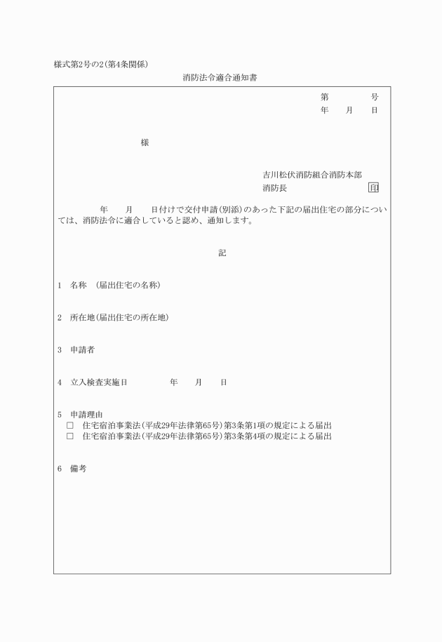 ○吉川松伏消防組合消防法令適合通知書等交付要綱
